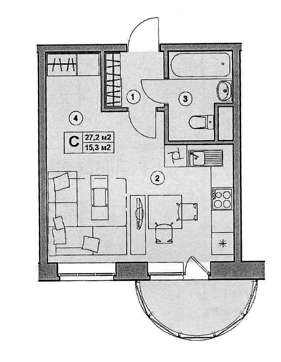 | Совмещенный санузел | 1 |